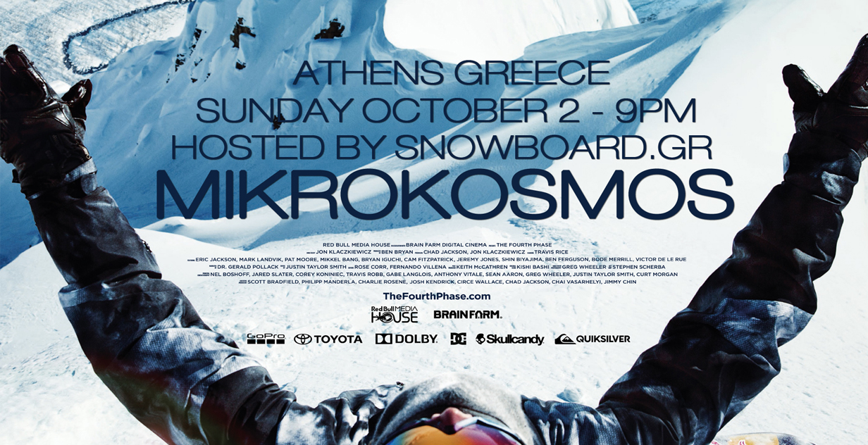 Το “The Fourth Phase” η ταινία που περιμένουν με ανυπομονησία όλοι οι snowboarders στον πλανήτη θα προβληθεί και στην Αθήνα στις 2 Οκτωβρίου στον κινηματογράφο Mikrokosmos ως μέρος του global tune in party που διοργανώνει η RedBull TV.