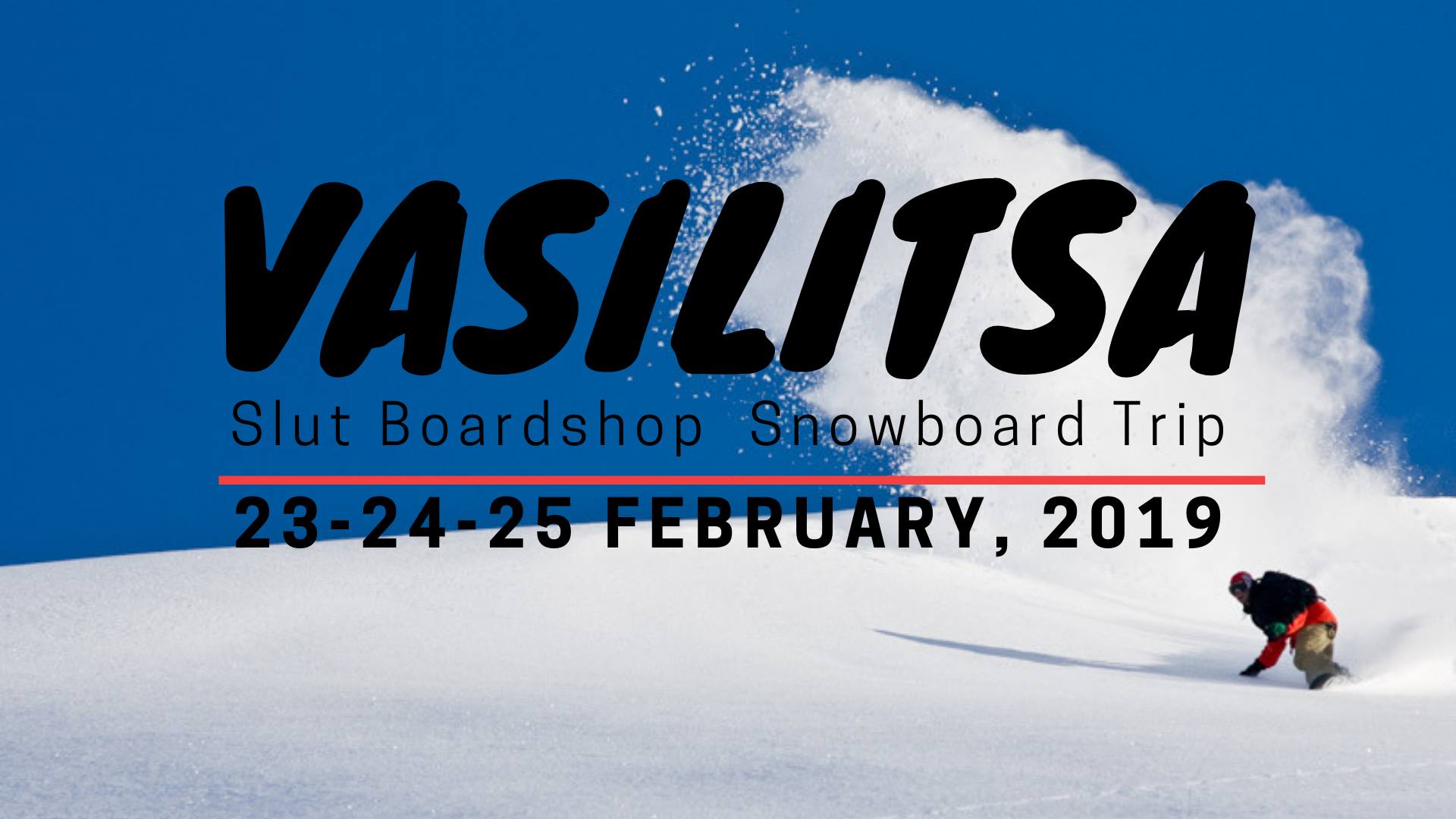 Το SLUT boardshop-Greece πάει για πρώτη φορά φέτος στη Βασιλίτσα στις 23,24 και 25 Φεβρουαρίου!Το κόστος είναι 110 ευρώ το άτομο στο καταφύγιο Vasilitsa V1850!Στην τιμή συμπεριλαμβάνονται ,δύο διανυκτερεύσεις ,και μεταφορά με πολυτελές πούλμαν!